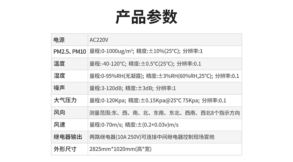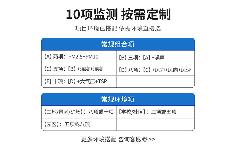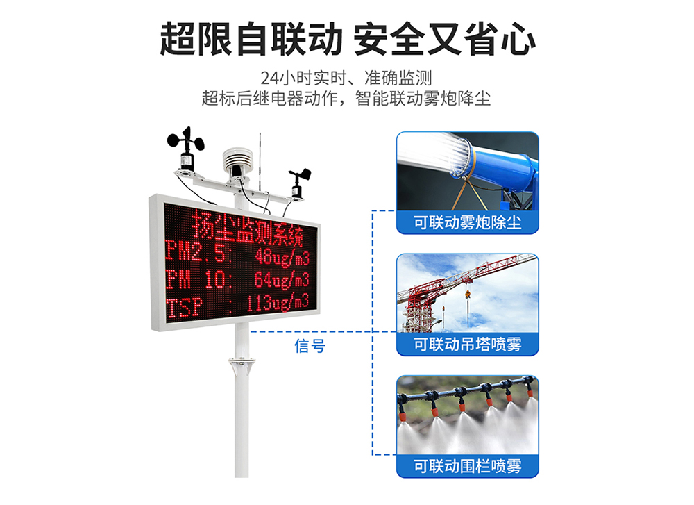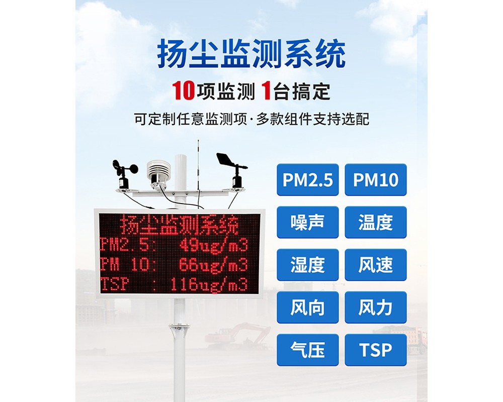 支持PM2.5+PM10+噪聲+溫度+濕度+風(fēng)速+風(fēng)向+風(fēng)力+大氣壓力+TSP等10項監測,可定制其中幾個(gè)項目,也可定制報警燈,可聯(lián)動(dòng)霧炮,選配視頻監控、雙色屏、太陽(yáng)能板等,免費對接政府專(zhuān)網(wǎng),24小時(shí)實(shí)時(shí)在線(xiàn)監測,LED防水點(diǎn)陣屏,手機APP+電腦云端實(shí)時(shí)操控,操作方便