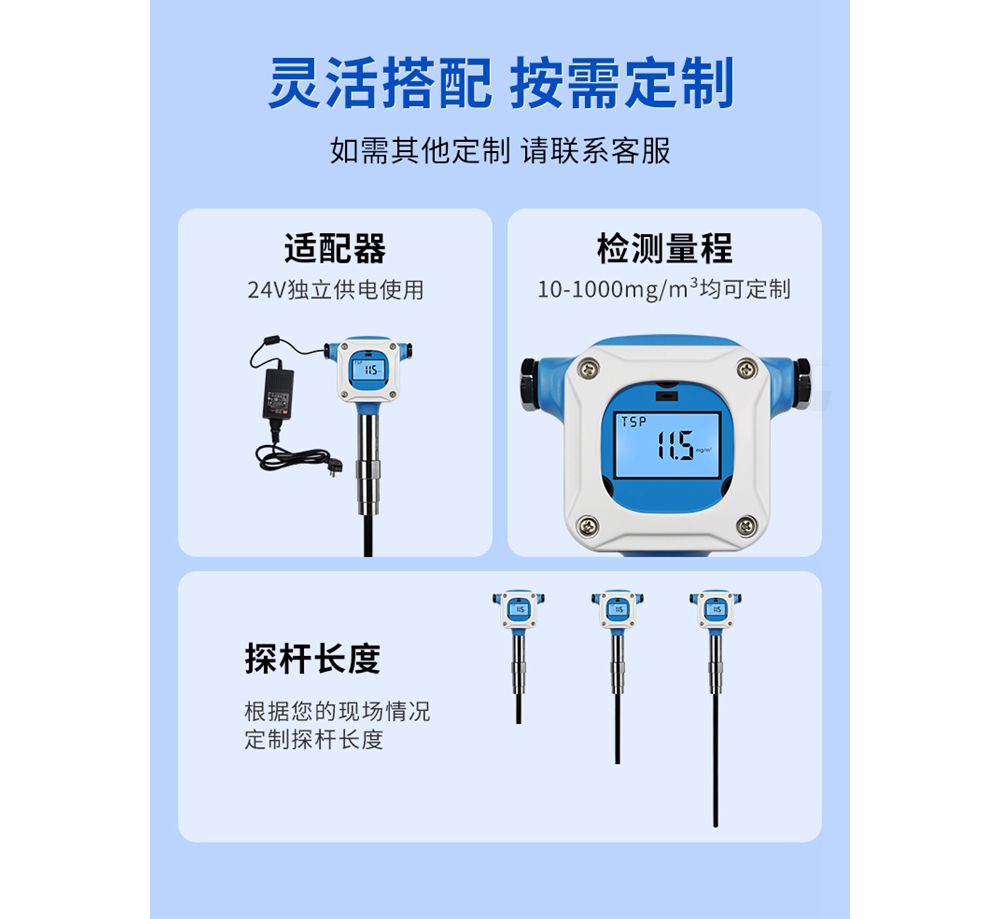 檢測全塵、實(shí)時(shí)、管道插入式專(zhuān)用。數顯直讀實(shí)時(shí)在線(xiàn)監測;免調試,一體式設計安裝操作更簡(jiǎn)單;耐高溫高壓;強抗干擾能力;工業(yè)兩線(xiàn)制4-20mA輸出;