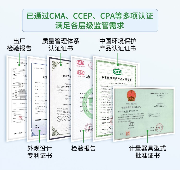 在此之前,我司揚塵監測儀器已相繼取得CCEP中國環(huán)境保護產(chǎn)品認證證書(shū)、CMA檢測報告、CPA計量器具型式批準證書(shū)、質(zhì)量管理體系認證、外觀(guān)設計專(zhuān)利證書(shū)等多項資質(zhì)認證,在同類(lèi)產(chǎn)品中具備相當的實(shí)力和競爭力,產(chǎn)品質(zhì)量經(jīng)得起市場(chǎng)檢驗!